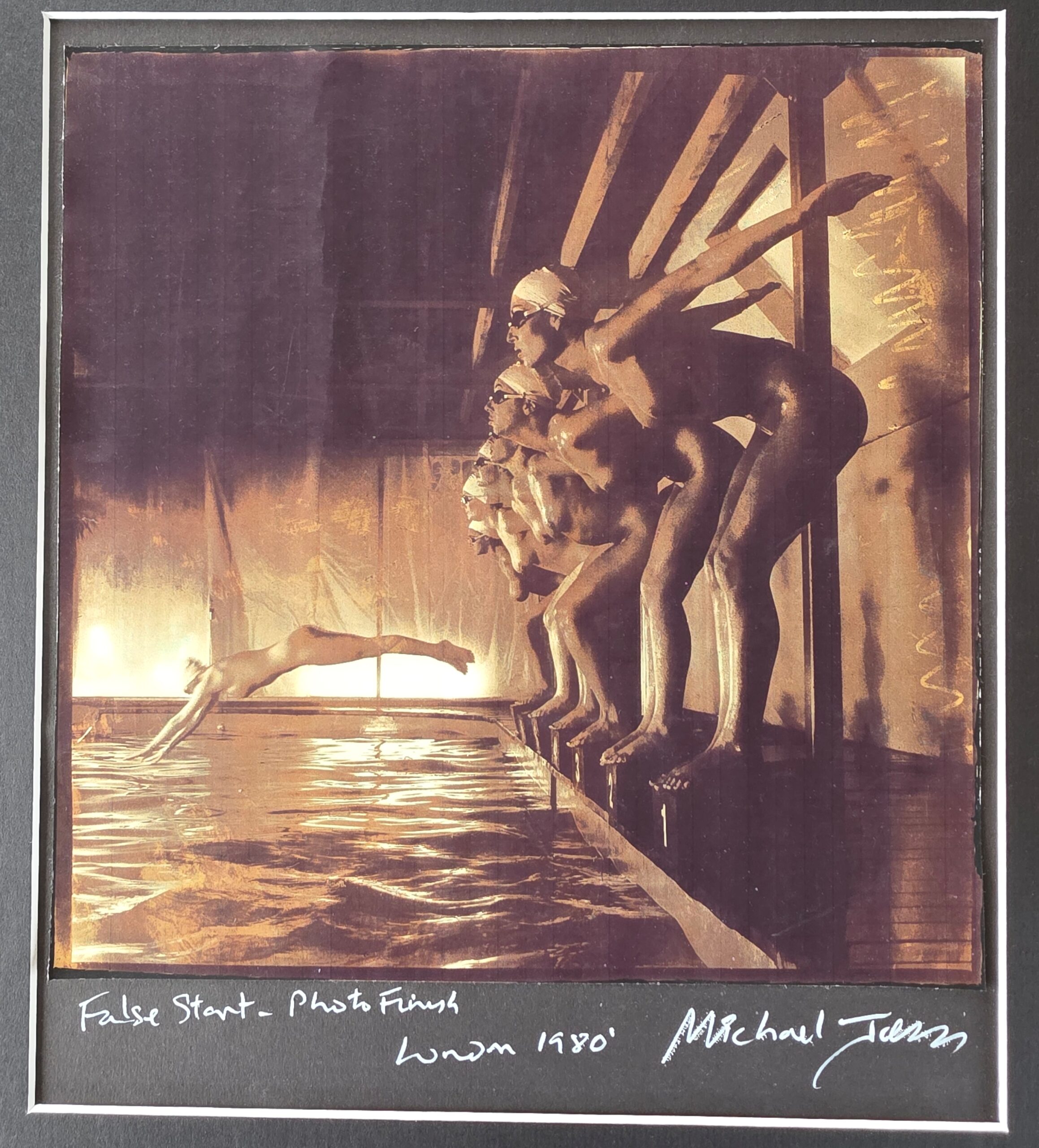 Dames de la piscine « Faux départ », plongeur flou en noir et blanc, de la séance photo Playboy Interview, par Michael Joseph